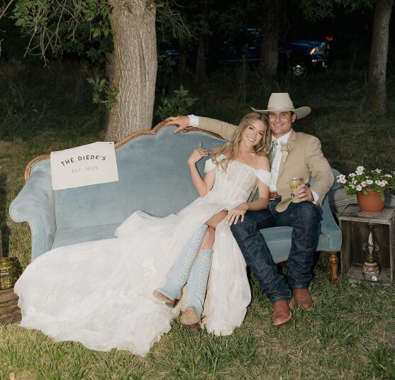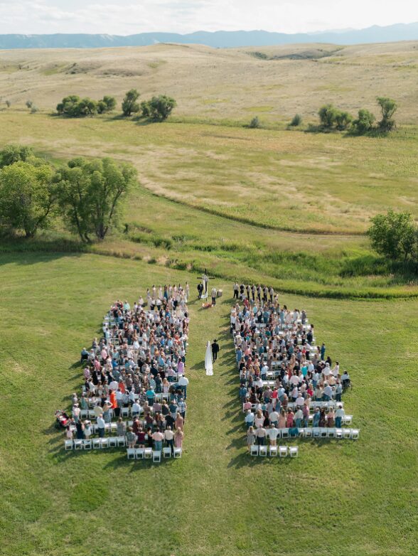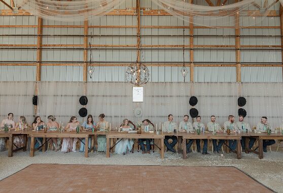 The delightful combination of country ranch and vintage decor transformed this working family ranch barn and field into gorgeous wedding venue.